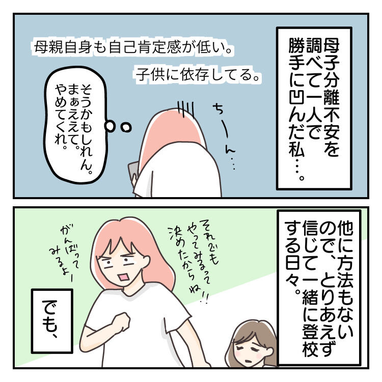 長女が一年生の時の母子分離不安について描いています。