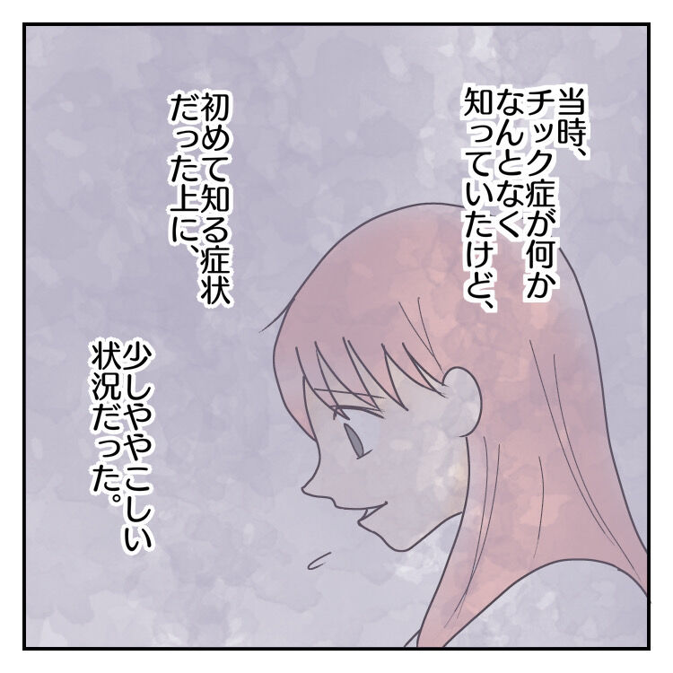 当時チックというものもあまり知らなくて、尚且つこの症状がチックに当たるということも恥ずかしながら私は知りませんでした。