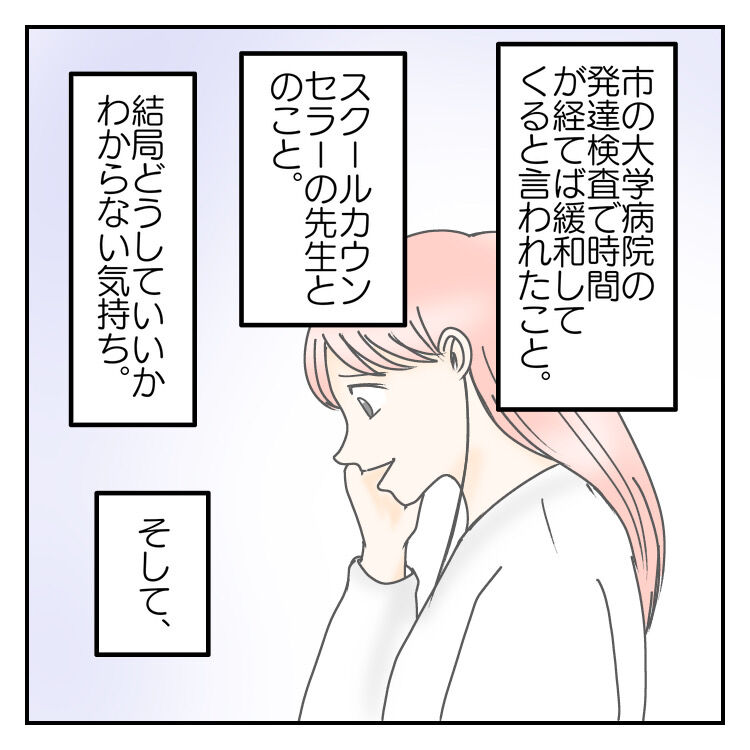 長男が学校に行きたくない理由をどう捉え、どう向き合うか、一度は何もないと言われた発達検査。再度受診して発達診断がおりるまで…そんな日々の記録です。