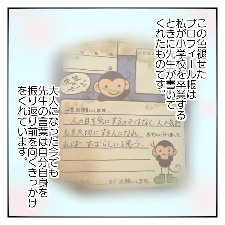 先生がくださった言葉は大人になるほど深く感じて、今も自分を振り返り見つめ直すきっかけをくれています。