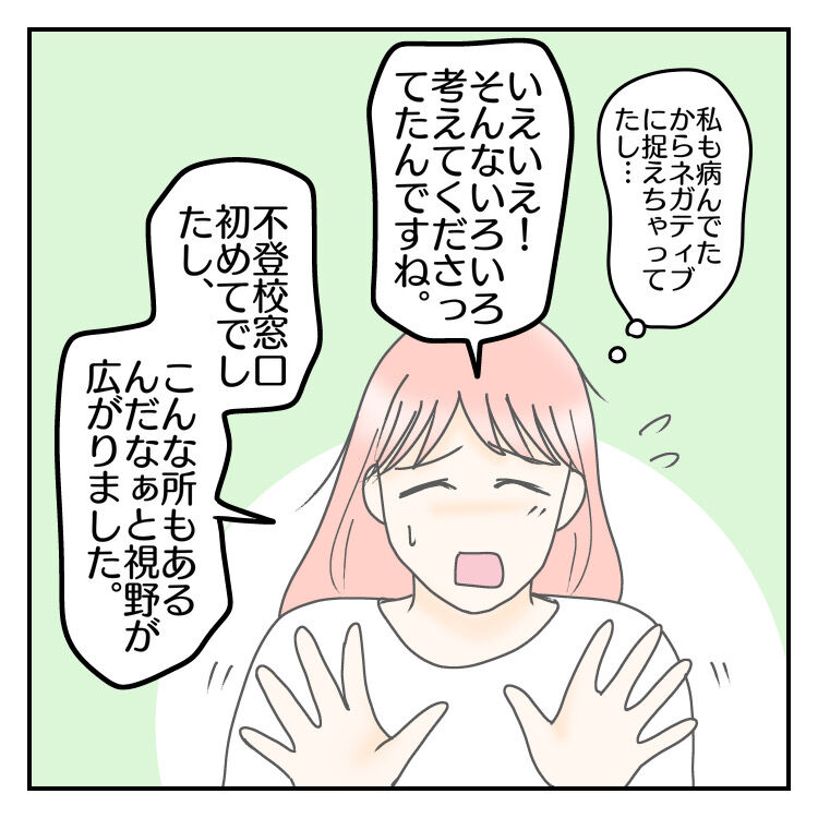 不登校専門窓口へ行き、学校のカウンセラーの先生のもとに報告しに来ました。