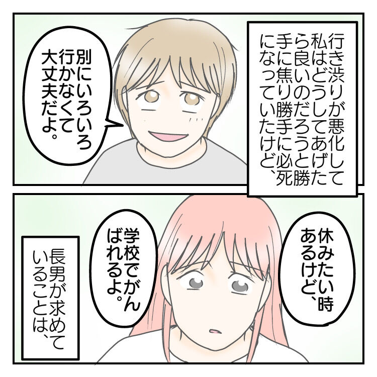きっと本来ならいろいろとしてあげられるサポートはあるのでしょうが、(この時は私もよくわかっておらず💦)この時長男が望んでいることは別に困っていることをどーこーして欲しいわけではなく、ただ休みたい。休めたらまた頑張れる。ということでした。