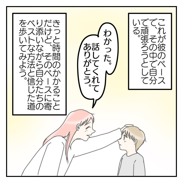 その言葉を受け入れて、我が家はそういうスタイルだとやっていこうと思いました。長期戦は覚悟でした。