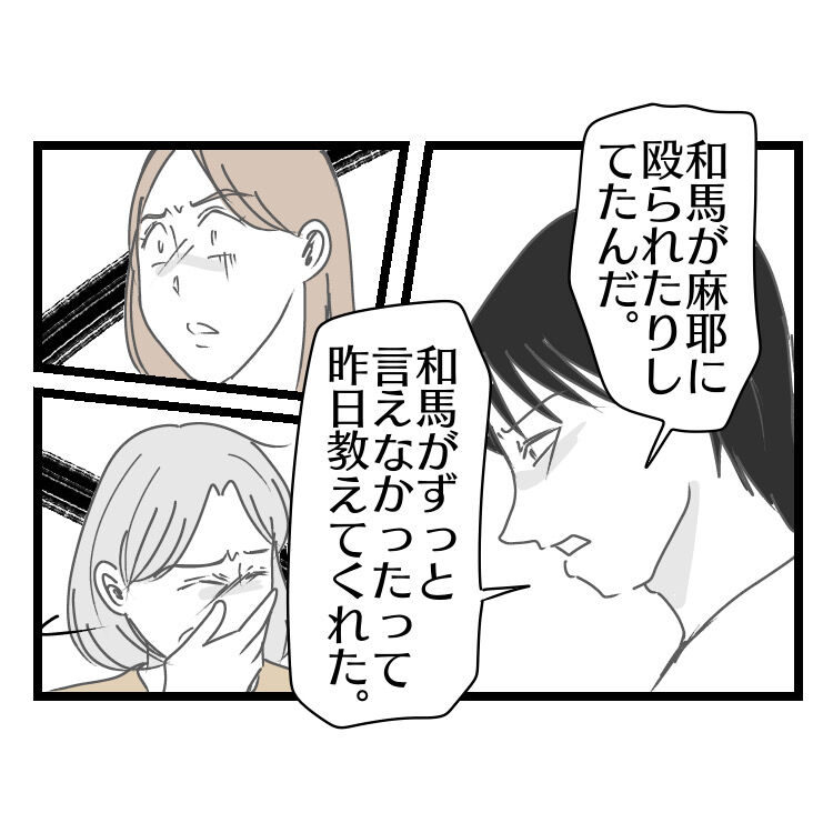 亮太が麻耶の機嫌を損ねないように頑張っても、麻耶と和馬との折り合いが悪くなってどうしようもなくなってた。和馬もそれは悩んでた。
