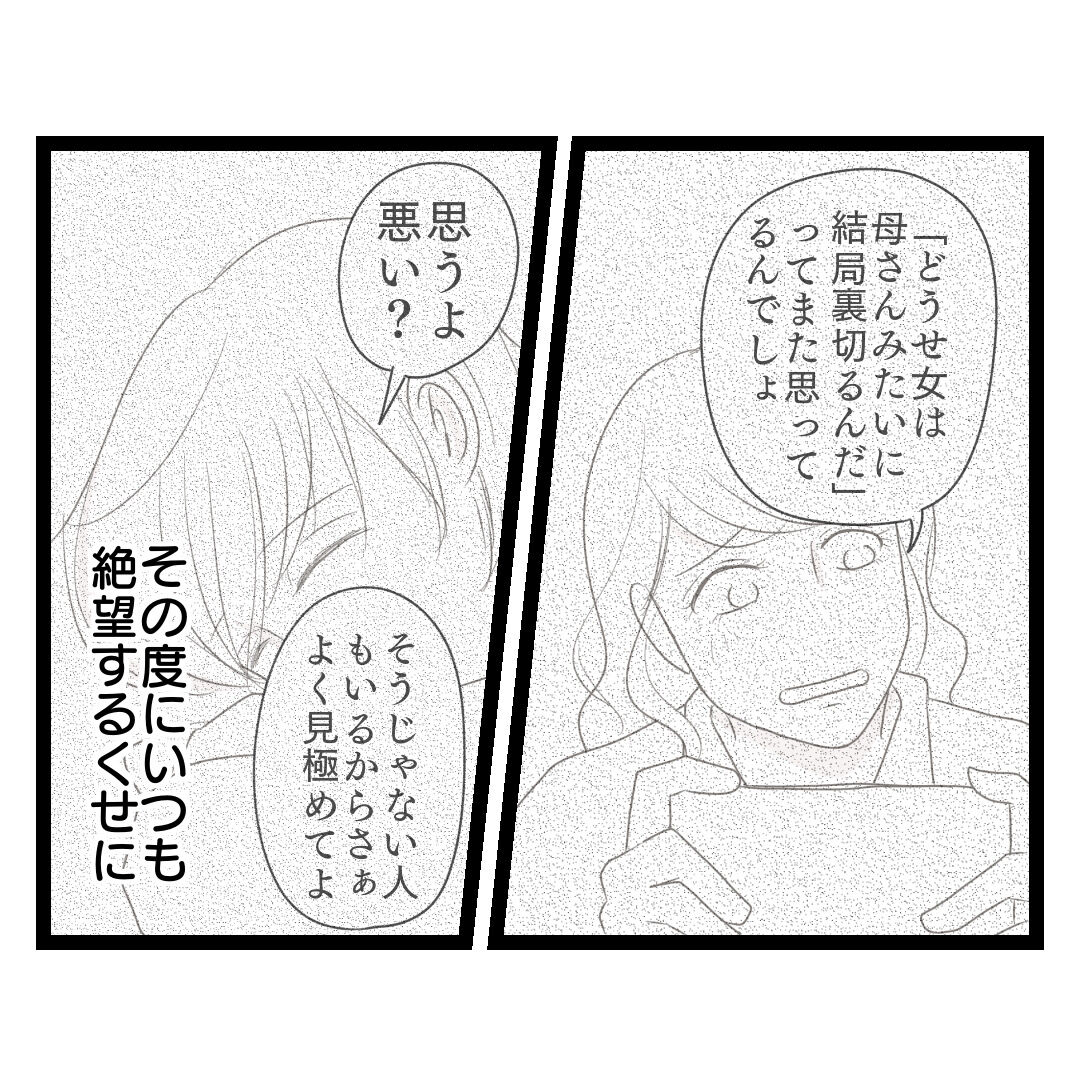 歪んだ愛〜レス夫婦の末路〜【24】 2025年02月17日 ご覧いただきありがとうございます😊妻のセックスレスから夫婦間に溝が…。歪んだ愛し方しかできなくなった夫。家族は思いもよらない悲劇へと向かう。今回も半分以上実話の創作です。【最初から読む】【前回のお話】 本編です。ミヤの回想の続きから…高校時代こっそり仲の良かったイオリとミヤ。母のいないイオリは寂しがりやな一面があった。この2人の関係はこの後予想外なことに…次回に続きます。↓❤︎おまけ❤︎↓【ねこじまの作品集がKindleで読めます!】↓リンクはこちら↓⭐︎更新はブログが先行しています!ぜひフォローよろしくお願いします⭐︎【過去の人気連載】【過去の連載】 【連載中】 「歪んだ愛」カテゴリの最新記事 < 前の記事次の記事 >